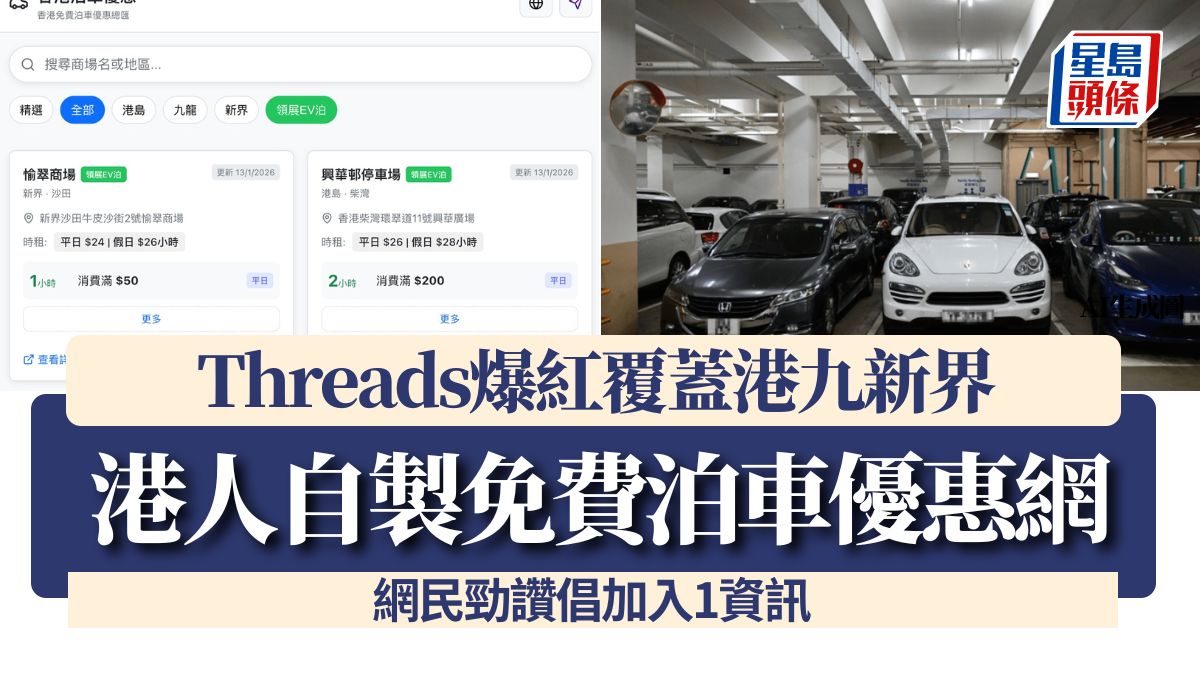 港人自製免費泊車優惠網!Threads爆紅覆蓋港九新界 網民勁讚倡加入1資訊
