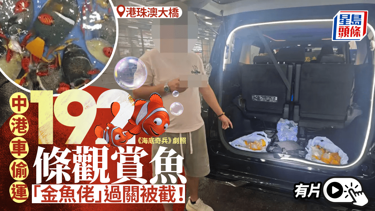 中國海關總署官方微博「海關發布」通報一宗涉及中港七人車經港珠澳大橋,偷運192條觀賞魚(俗稱金魚)返內地的案件。