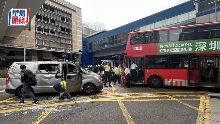 港鐵大圍站外兩車相撞 貨Van翻側司機一度被困 九巴:客貨車疑衝紅燈肇禍