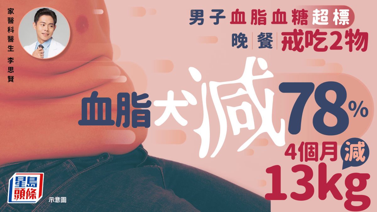 男子血脂血糖超標 晚餐戒吃2物逆轉病情 血脂大減78%4個月減13kg