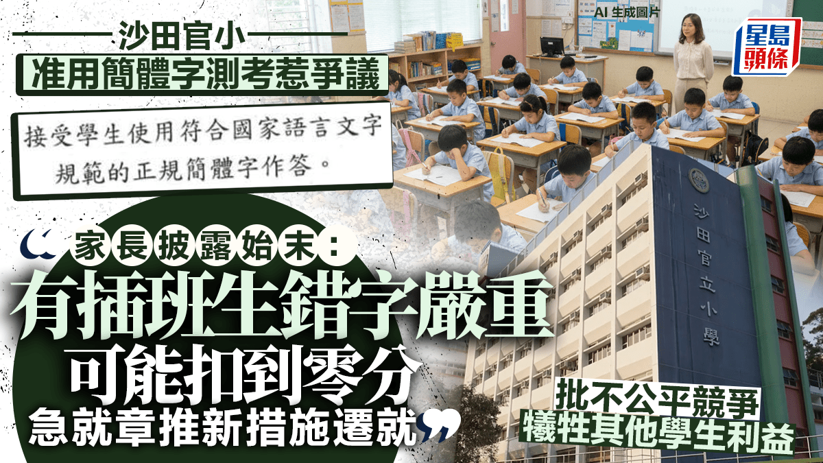 沙田官立小學日前以「為內地背景或習慣使用簡體字的學生,提供更友善的評核環境」為由,發出特別通告指批准校內測驗及考試使用簡體字作答,引起爭議。