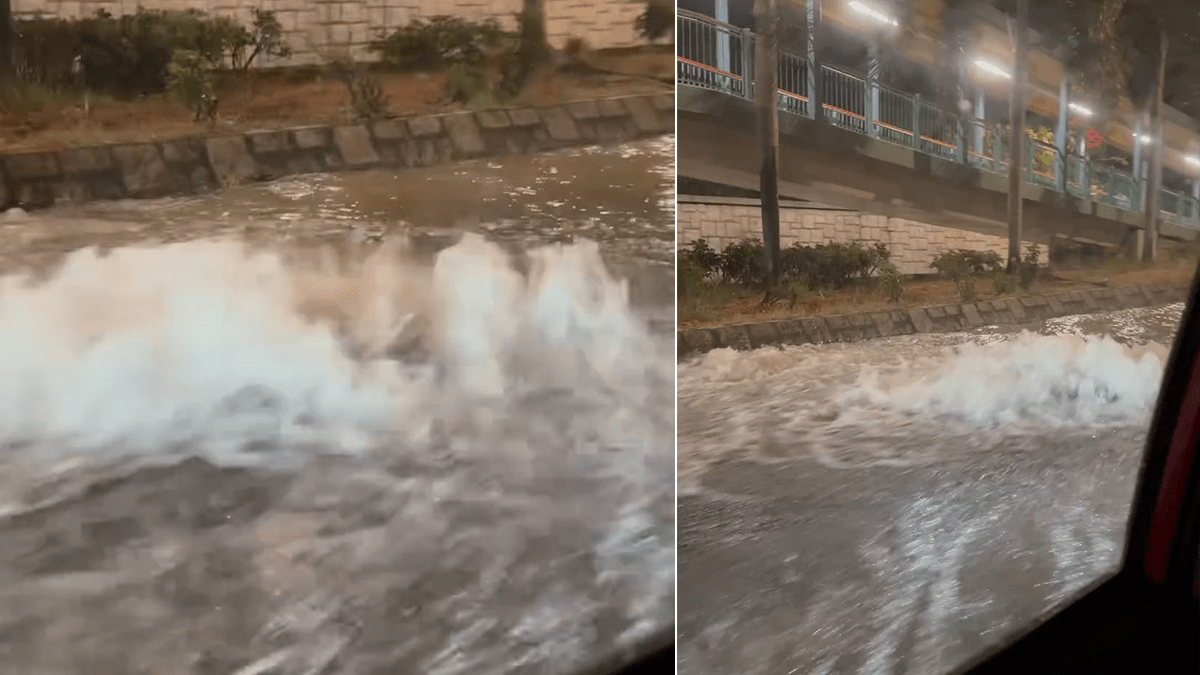 粉嶺沙頭角公路近新圍軍營爆水管 車輛猶如陸上行舟