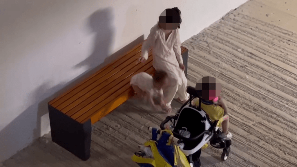 周二(9月30日)網上流傳一段可怖虐待嬰兒片段,片中所見一名南亞裔女童,在某大廈外走廊長凳上抱着嬰兒時,突然將嬰兒放在長凳並推落地下。嬰兒面部著地硬撼,頓時哭聲震天。片段曝光後引來網民熱議,頻呼看完片段後驚心動魄,深怕嬰兒受傷。