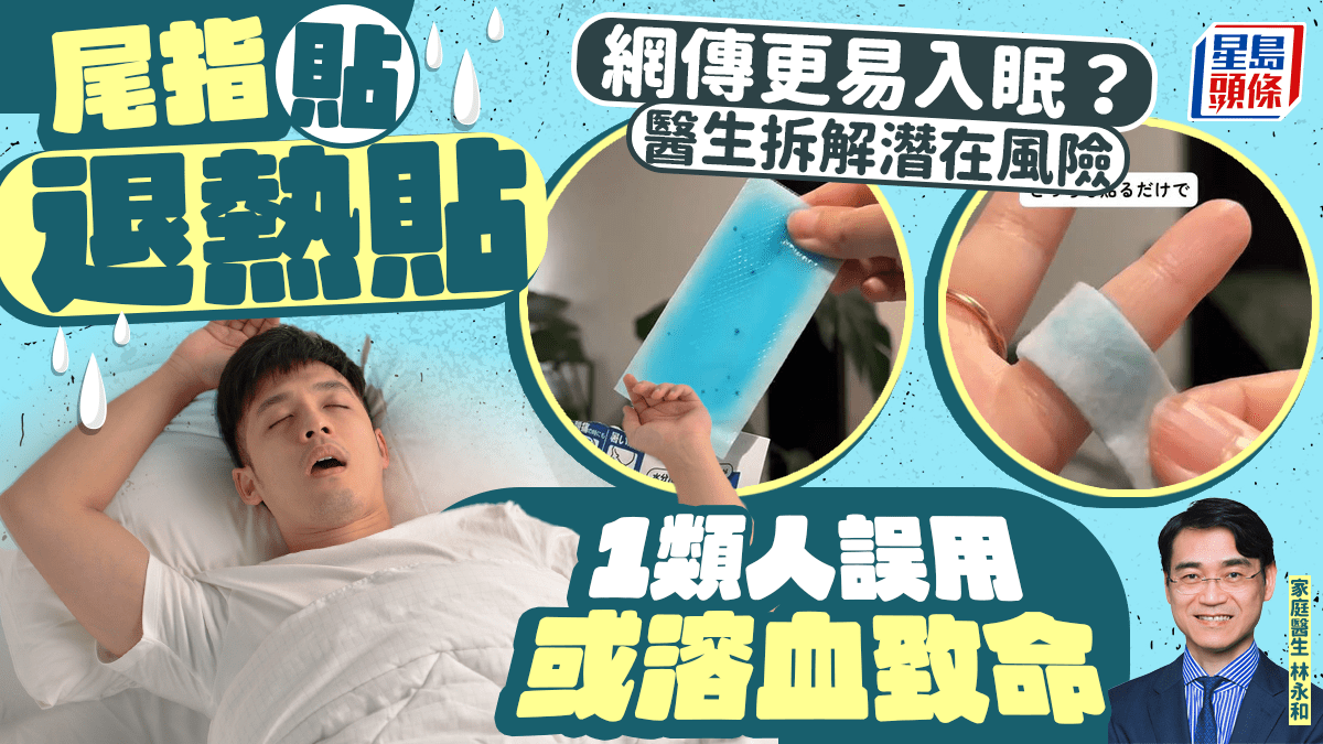 【失眠/睡眠/退熱貼】近日社交網上瘋傳在「尾指貼退熱貼」可以幫助入睡,有不少網民「跟風」嘗試後聲稱有效、大讚「好好瞓」;亦有網民分享自己嘗試後不慎吃到退熱貼。本港家庭醫生林永和接受《星島頭條》訪問時,拆解尾指貼退熱貼的潛在健康風險,更警告不是人人都適合用?