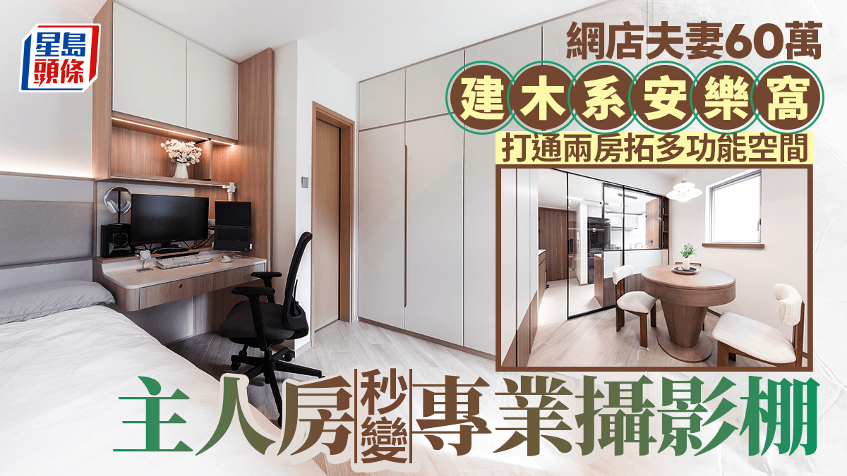 網店夫妻60萬建木系安樂窩 打通兩房拓多功能空間 主人房秒變專業攝影棚