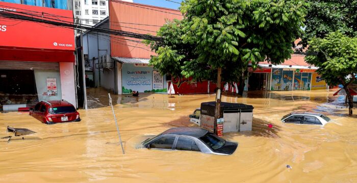 与此同时,首都河内也出现强降雨,普遍降雨量为100至180毫米,局地雨量更大,导致市区大面积内涝。受此影响,多所学校紧急通知学生改为居家远端上课,上千航班因持续的暴雨雷电天气被迫取消或备降其它机场。目前,河内有关部门正全力排涝,加紧处理全市上百处严重积水点。