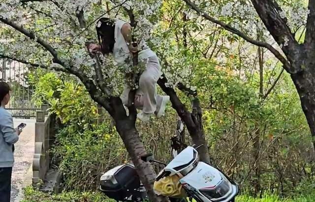 4月6日,一名網友發布視頻稱,在上海顧村公園,一名身材略胖的女遊客爬上櫻花樹上拍照,結果把樹連根壓斷。 視頻中可以看到,一名女子先爬上櫻花樹的枝椏,另一名女遊客給她遞手機時,櫻花樹突然倒下。肇事女子沒有受傷,還能自行爬起來。 顧村公園位於上海寶山區顧村鎮,每到春天,賞櫻的遊人絡繹不絕。據內地大風新聞報道,這棵被壓倒的櫻花樹已有20多年的樹齡。 公園園林綠化部工作人員表示,他們已經掌握了事件,並將盡