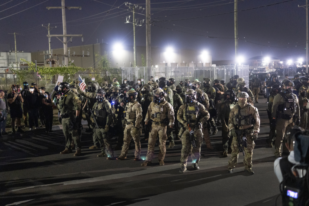 在波特兰,可以听到一些煽动者对联邦探员喊出了露骨的死亡威胁。一名身穿黑衣的人喊道:“已为他们准备好了断头台。”