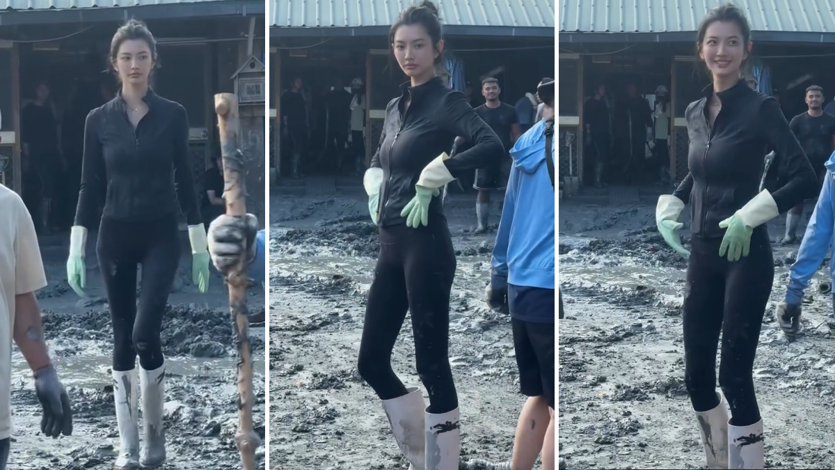 一名連日參與救災的網民周二(9月30日)在網上分享影片,其中一段名為「馬太鞍時裝周」。畫面中可見,一名身材高䠷的女子身穿黑色緊身衣,戴著手套、腳穿白色雨鞋在泥濘上擺出專業模特兒的步履。