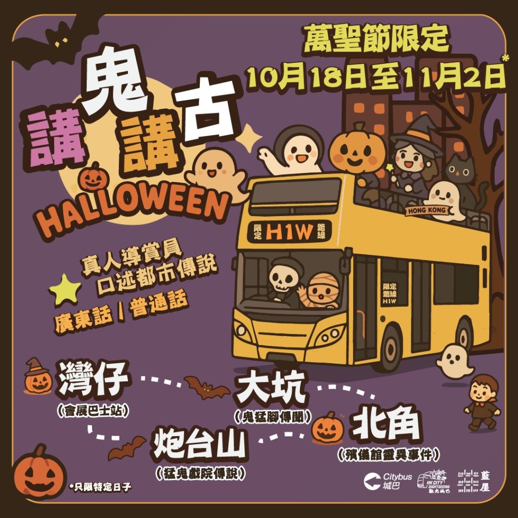 萬聖節即將來臨,Citybus 首次聯乘 We 嘩藍屋 Viva Blue House ,攜手呈獻香港最有萬聖節特色的經典路線H1W!巴士團精選香港島灣仔及北角一帶充滿靈異與都市傳說嘅的集地,沿途由專業導賞員講解,帶領乘客深入了解歷史、民俗、懸疑及文化,探索毛骨悚然的一面,各位自問膽生毛的不妨去挑戰!