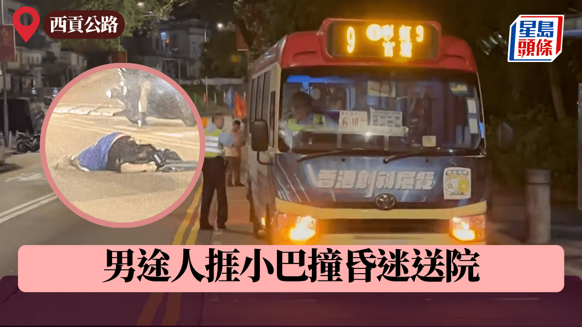 西貢公路近菠蘿輋巴士站位置,今日(10月8日)晚上7時許,一部小巴撞倒一名男途人。男子倒地浴血重創,救護員接報趕至時他仍昏迷,隨即被送往伊利沙伯醫院搶救。意外原因仍在調查。