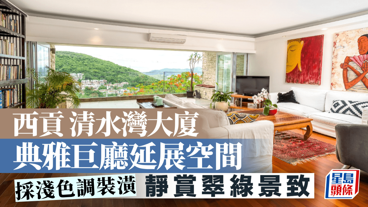 西貢清水灣,坐擁優美山海美景,住戶可以放慢生活步調。今日帶大家走訪清水灣大廈高層放盤,實用面積2287方呎,3房2浴設計,廳大房大,典型豪宅大戶開則,全屋裝潢甚有格調,客廳緊接大露台,盡享自然風光。