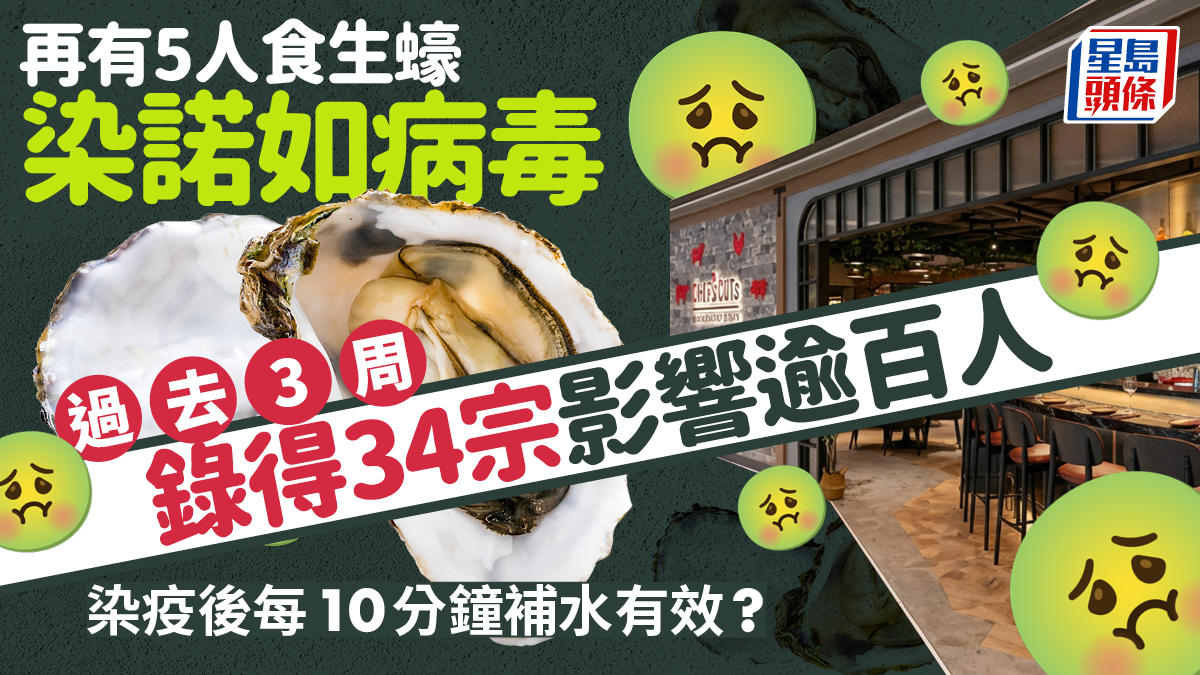 諾如病毒|黃竹坑食肆生蠔致五人食物中毒 三周錄34宗個案 專家教染疫後每10分鐘補水