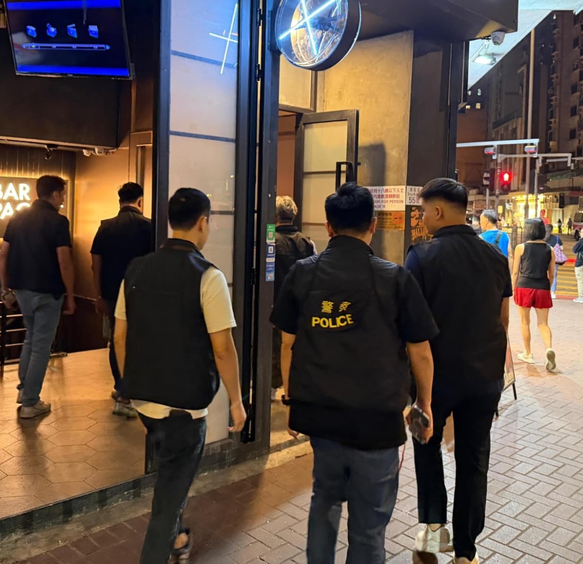 行動中,人員突擊搜查區內十六個處所,包括酒吧、夜總會等,並在杉樹街一酒吧內發現一名51歲姓任本地男子為被通緝人士,他現正被扣留調查。