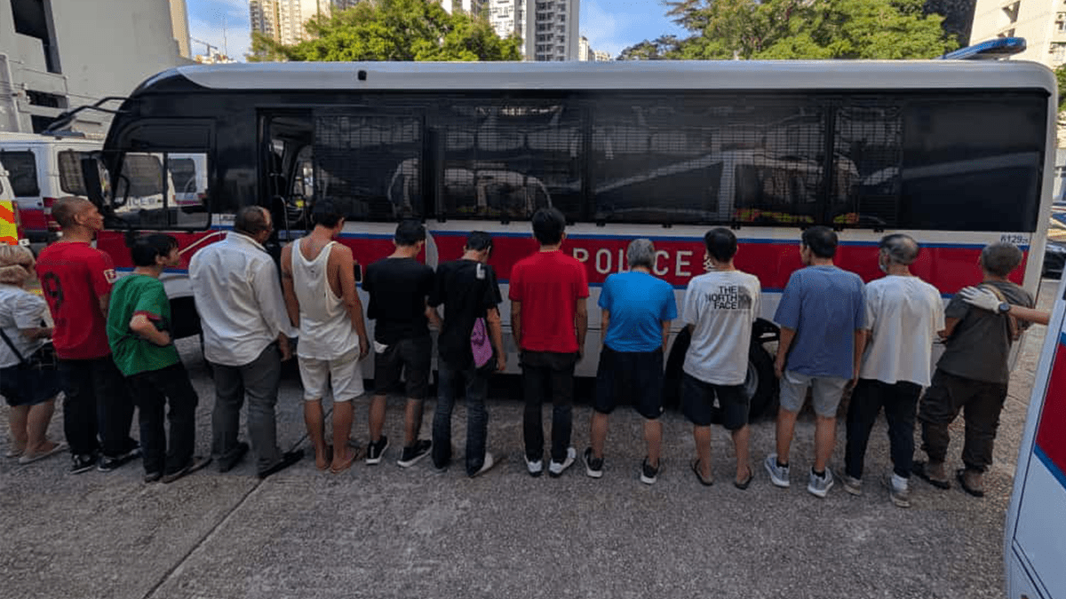 行動中,人員在該單位內一名63歲姓余本地男子,涉嫌「經營毒窟」及「販運危險藥物」;單位內另外14男1女,年齡介乎41至72歲,則涉嫌「服食或注射危險藥物」被捕。所有被捕人現正被扣留調查。