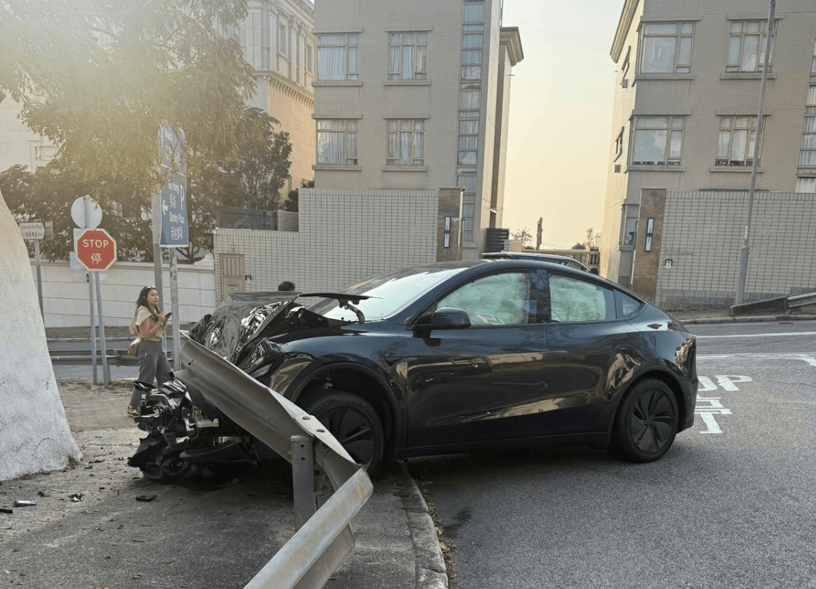 周日(22日)下午4時許,警方接獲途人報案,指一輛Tesla私家車駛至赤柱環角道與舂磡角道交界時失事「自炒」,撞毀約5米長風琴式防撞欄。 據現場情況,涉事Tesla其後剷上行人路,車頭嚴重損毀,零件碎片散落一地,車內安全氣袋彈出。防撞欄雖未被撞斷,但受強烈衝擊而凹陷變形。 意外中司機沒有受傷,毋須送院。警方正調查事故原因。