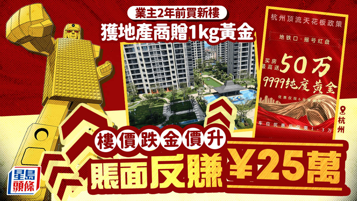 跌市奇葩︱杭州業主¥250萬買新樓獲贈1KG黃金  樓價跌金價升賬面賺¥25萬