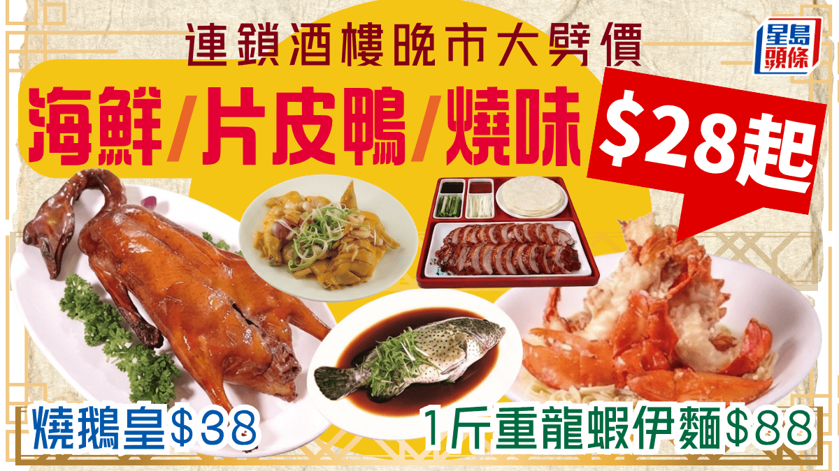 連鎖酒樓晚市震撼優惠 $28起歎燒鵝/片皮鴨/龍蝦伊麵 全線分店都有得食