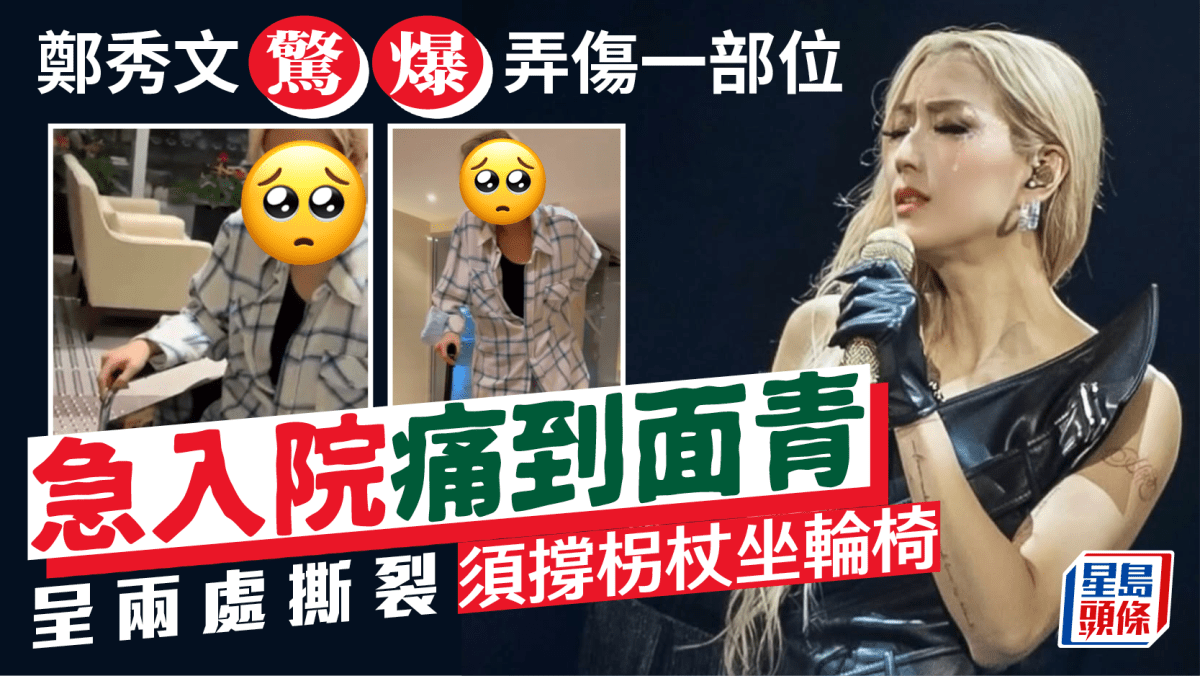 現年53歲的樂壇天后鄭秀文(Sammi),近年多次開演唱會場場爆滿,人氣歷久不衰,她即將於11月跟張敬軒組成夢幻組合開拉闊演唱會,引起全城期待。鄭秀文與許志安(Andy)與相戀逾30年,二人跨過「安心事件」陰影,修復關係獲不少網民祝福,早前「Big Four演唱會」鄭秀文全程力撐,跟老公極恩愛。正當事業愛情兩得意之際,鄭秀文近日卻發生意外需要入醫院,照過傷處更呈兩次撕裂狀態,天后明言非常痛楚,而其坐輪椅代步以及撐柺杖的影片亦隨之曝光。