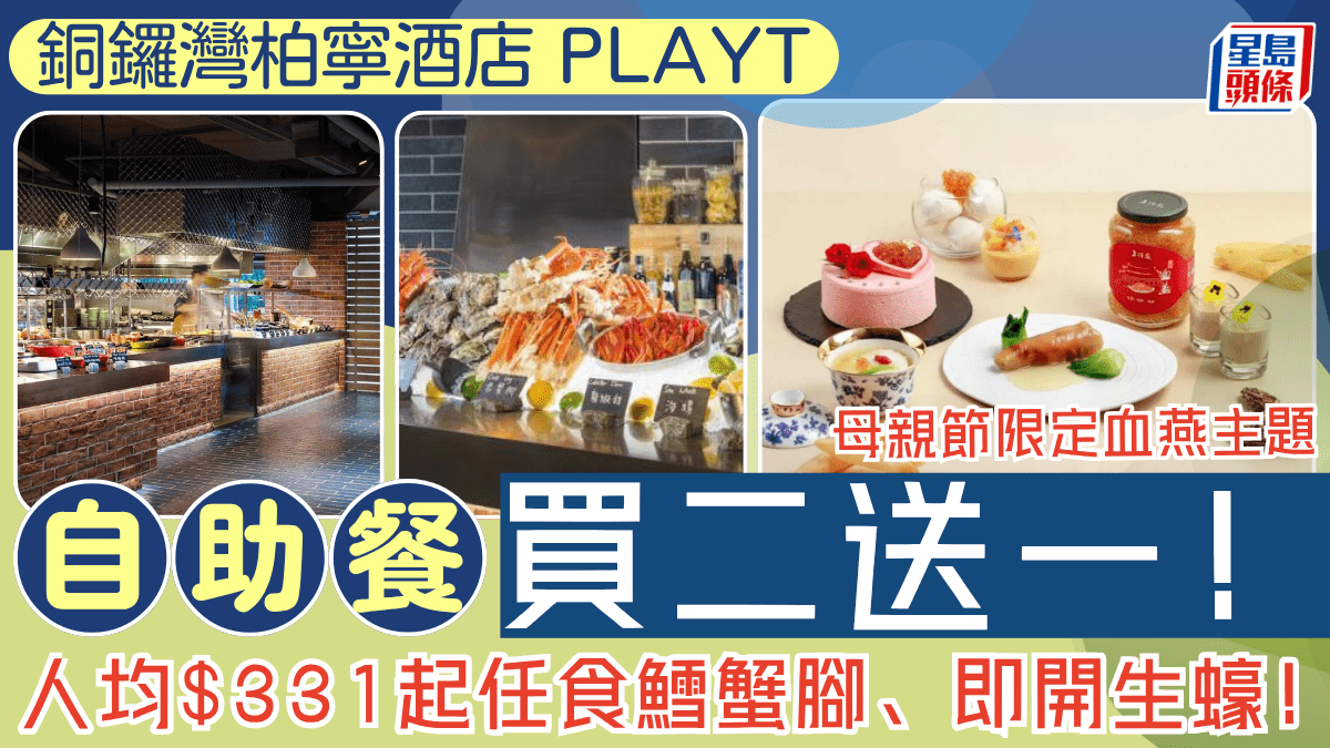 銅鑼灣柏寧酒店自助餐買二送一!人均$331起任食鱈蟹腳、即開生蠔 母親節限定血燕主題Buffet