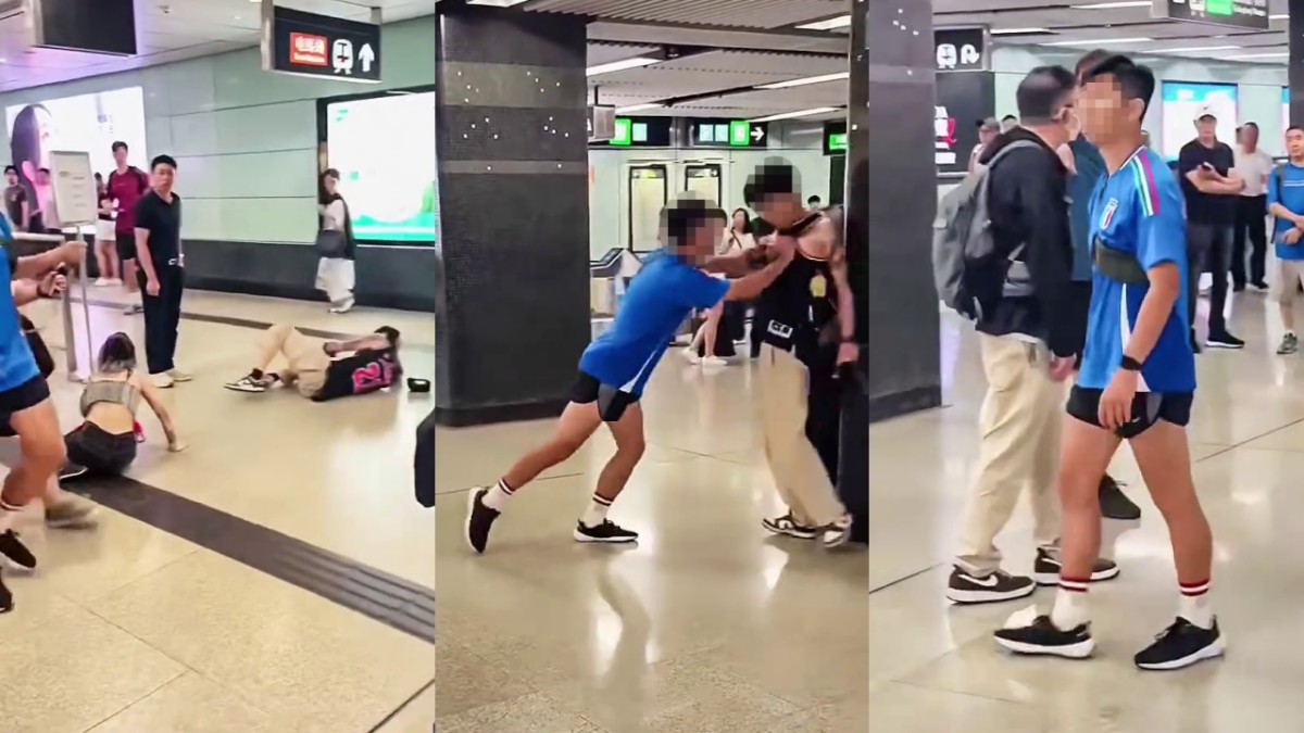 鑽石山站躁漢推跌情侶再連環出手 紋身男護花怒斥:你而家打女人呀!