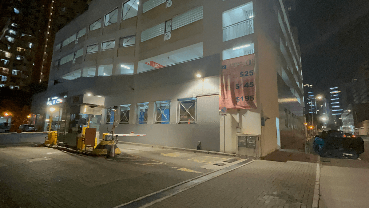 一對父女途經幸福邨停車場入口對開時,其嬰兒車被一名單車漢撞倒。楊偉亨攝