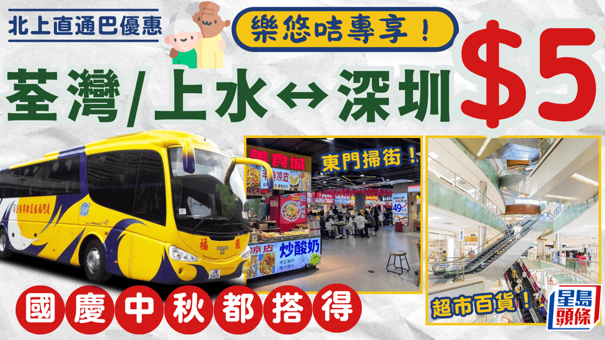 長者樂悠咭北上直通巴優惠!$5荃灣/上水直達深圳文錦渡口岸 國慶/中秋都搭得