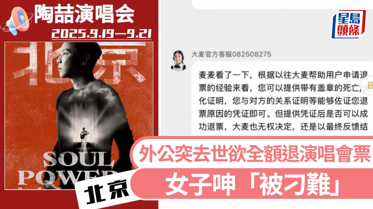 Home » 陶喆演唱會|外公突去世 女子呻「退票難」 大麥網致歉