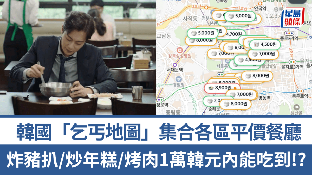 韓國「乞丐地圖」爆紅!集合各區平價美食餐廳 炸豬扒飯/辣炒年糕/烤肉1萬韓元內能吃到!?