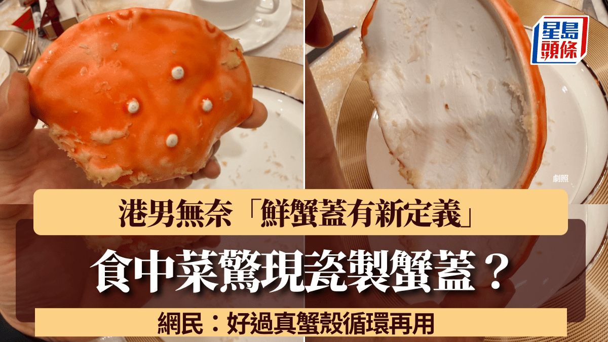 食中菜驚現瓷製蟹蓋?港男無奈「鮮蟹蓋有新定義」 網民:好過真蟹殼循環再用