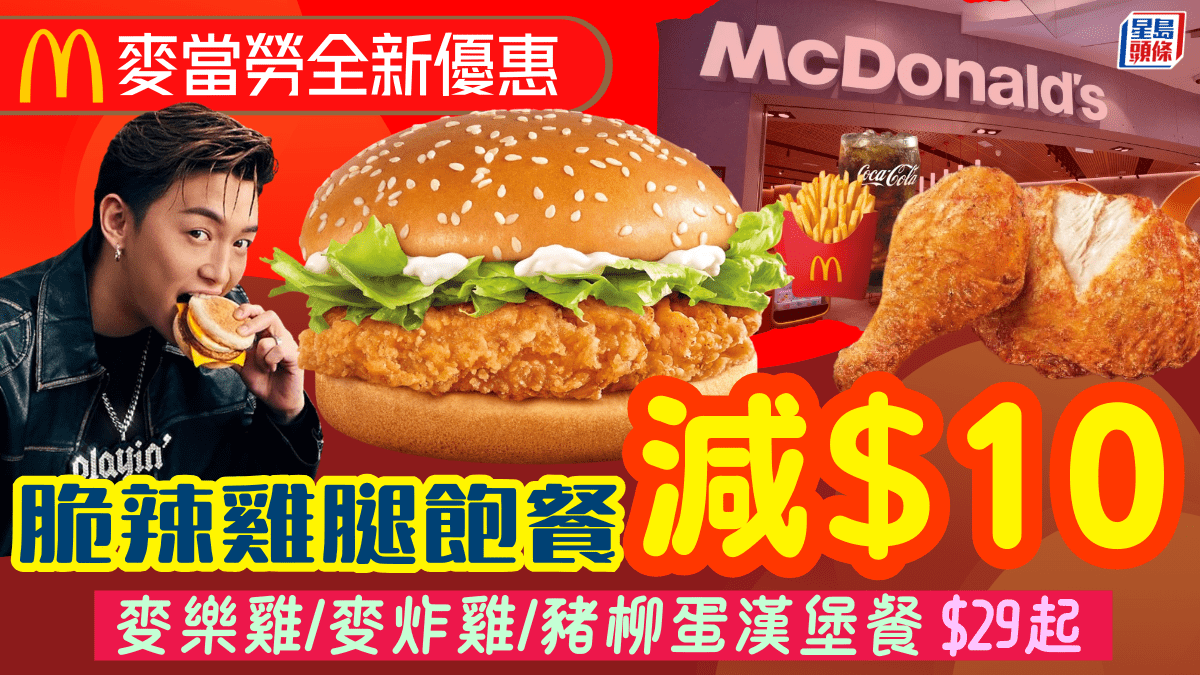 麥當勞全新人氣著數套餐優惠!脆辣雞腿飽餐減$10 麥樂雞/麥炸雞/豬柳蛋漢堡餐$29起