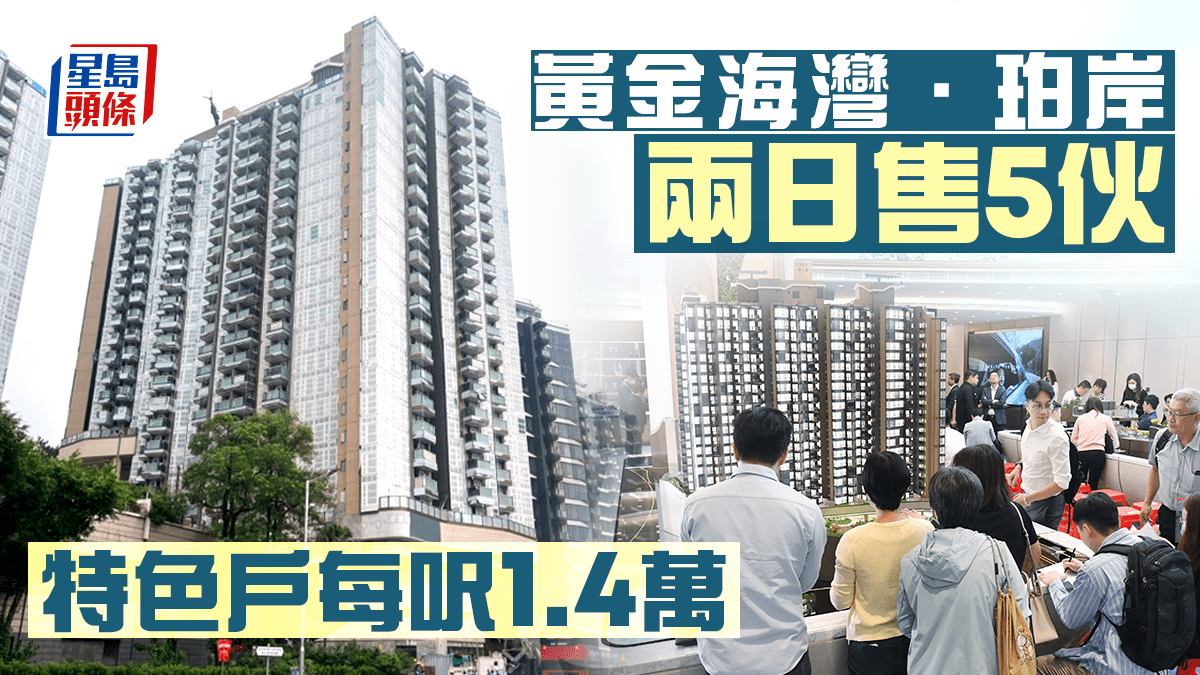旭日國際發展的屯門青山灣段大型臨海新盤黃金海灣系列持續受追捧,黃金海灣.珀岸過去兩日售出5伙,套現2870.1萬,包括昨日售出的1伙1房連天台特色戶,呎價逾1.4萬。