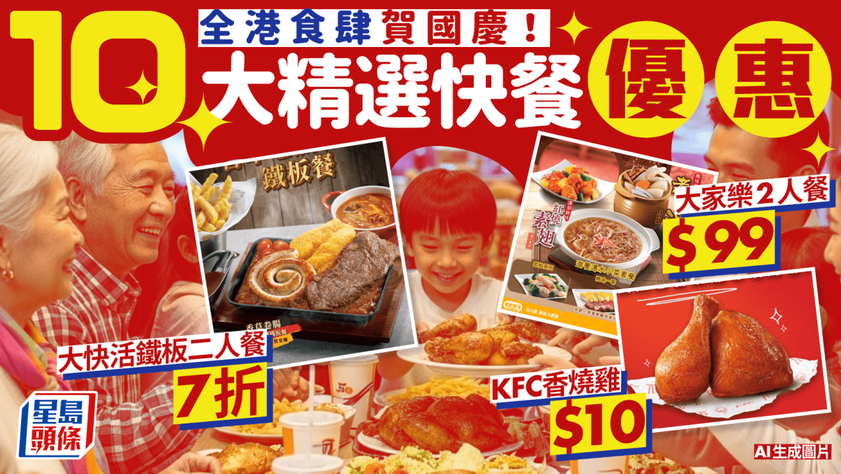 10大精選快餐國慶優惠 大家樂/一粥麵/大快活/美心MX