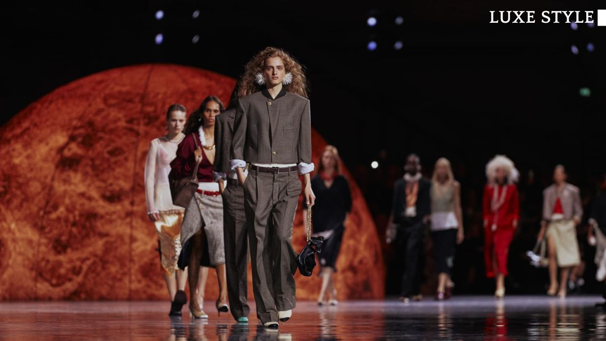 Louis Vuitton春夏女裝系列主題為「頌揚親密情懷:品味生活藝術」(In Praise of Intimacy as an Art de Vivre),創意總監Nicolas Ghesquière藉新作頌揚生活的藝術,歌頌珍貴的私人時光,以及自由無拘束的私人空間。騷場選址於法國羅浮宮博物館之中,曾是來自奧地利的法國皇后安娜(Anne d’Autriche)的Summer Apartments上演,藝術氛圍尤其濃厚。