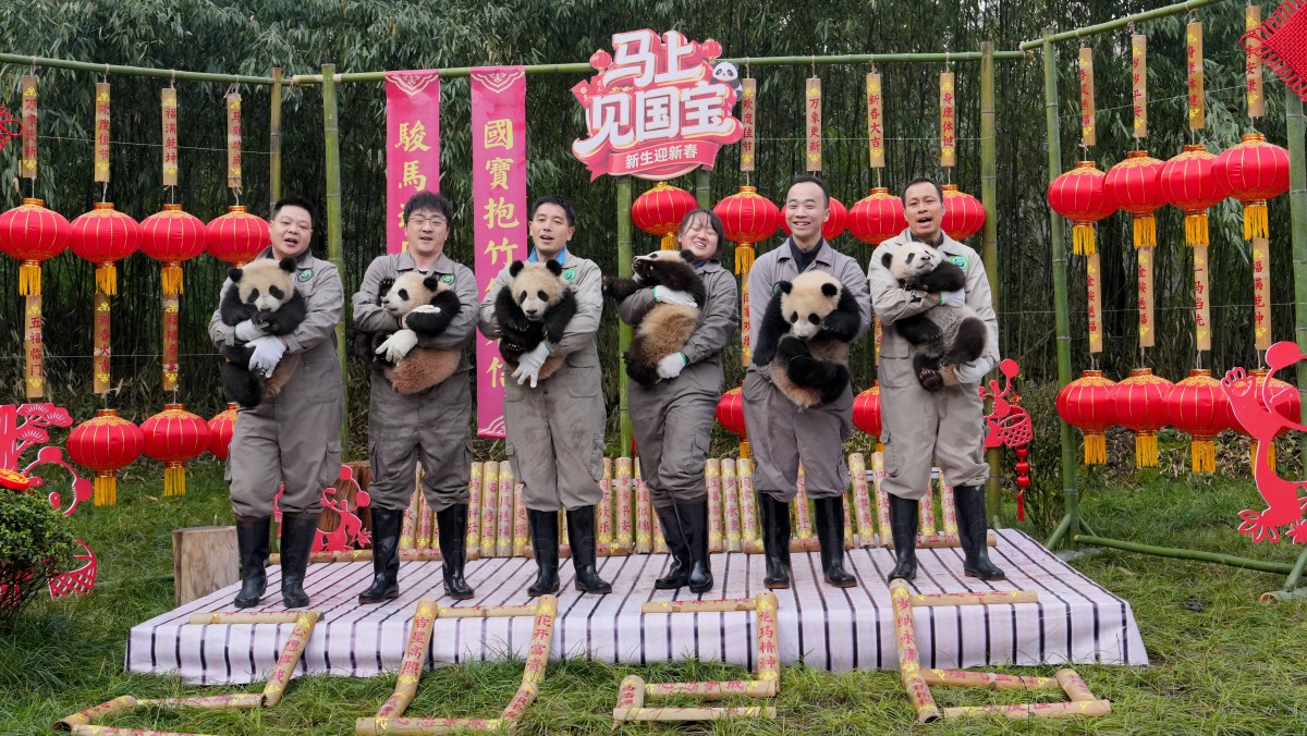 30隻新生大熊貓四川亮相 向民眾拜早年|多圖