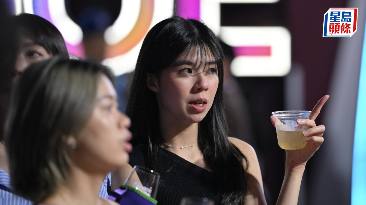 在港讀書的內地生Nina是首次參加美酒佳餚巡禮,計劃「飲5個Token起步」,亦品嚐了清酒、氣泡酒及小食拼盤。她認為場內美酒種類非常多,笑稱「抵飲又抵買」,又指自己是特意傍晚入場,「想着沒那麼多人,也能早點開始飲」。