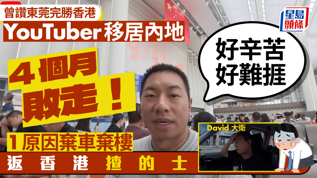 Home » YouTuber移居內地4個月敗走!曾讚東莞完勝香港 1原因棄車棄樓返香港揸的士 「好辛苦好難捱」